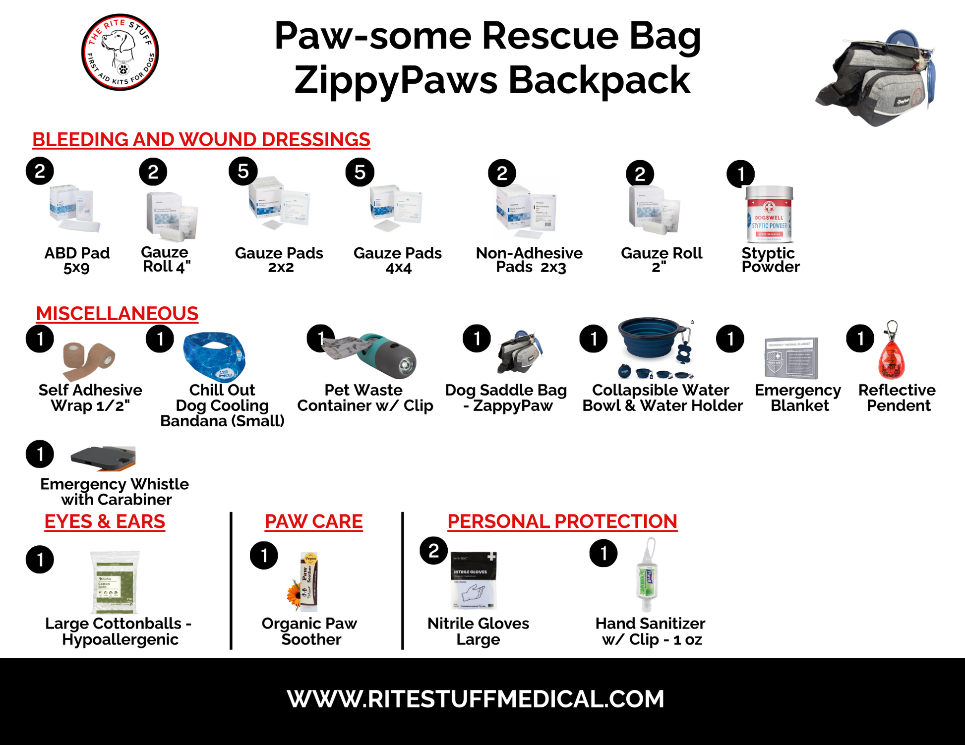 The Paw-Some Rescue Emergency Saddle Bag – the ultimate grab-and-go solution for small to medium-sized dog owners who prioritize preparedness. This compact yet comprehensive first aid and emergency kit is tailored to keep your smaller furry companion safe and comfortable in any unexpected situation.